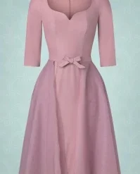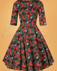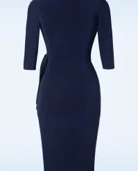 TopVintage Exclusive ~ 50s Olivia Roses Long Sleeve Swing Dress In Navy